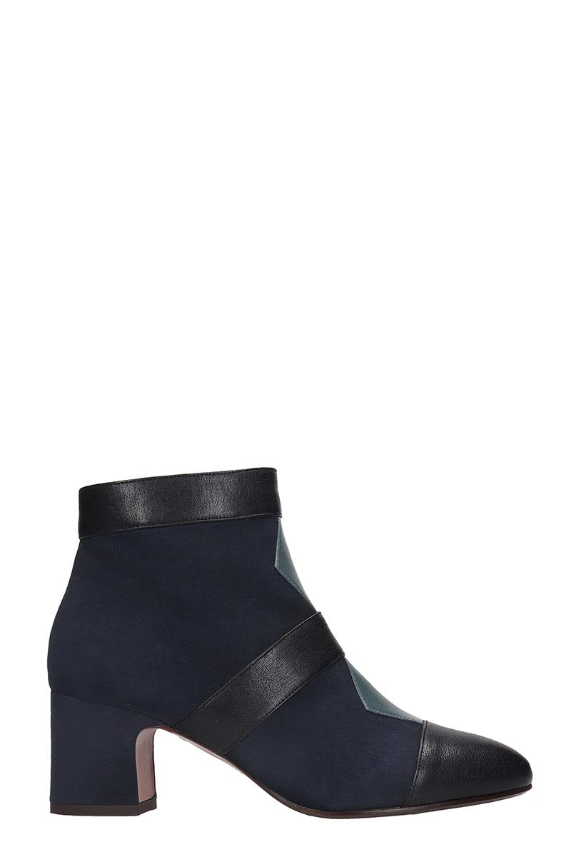 Chie Mihara Elgi High Heels Ankle Boots In Blue Suede And Leather