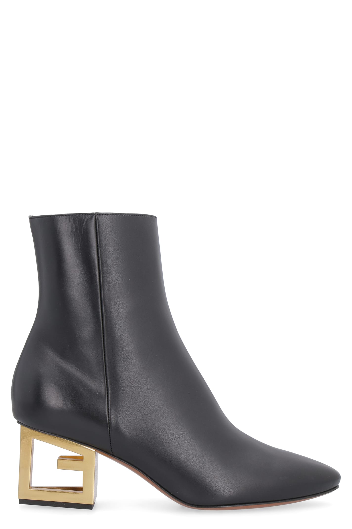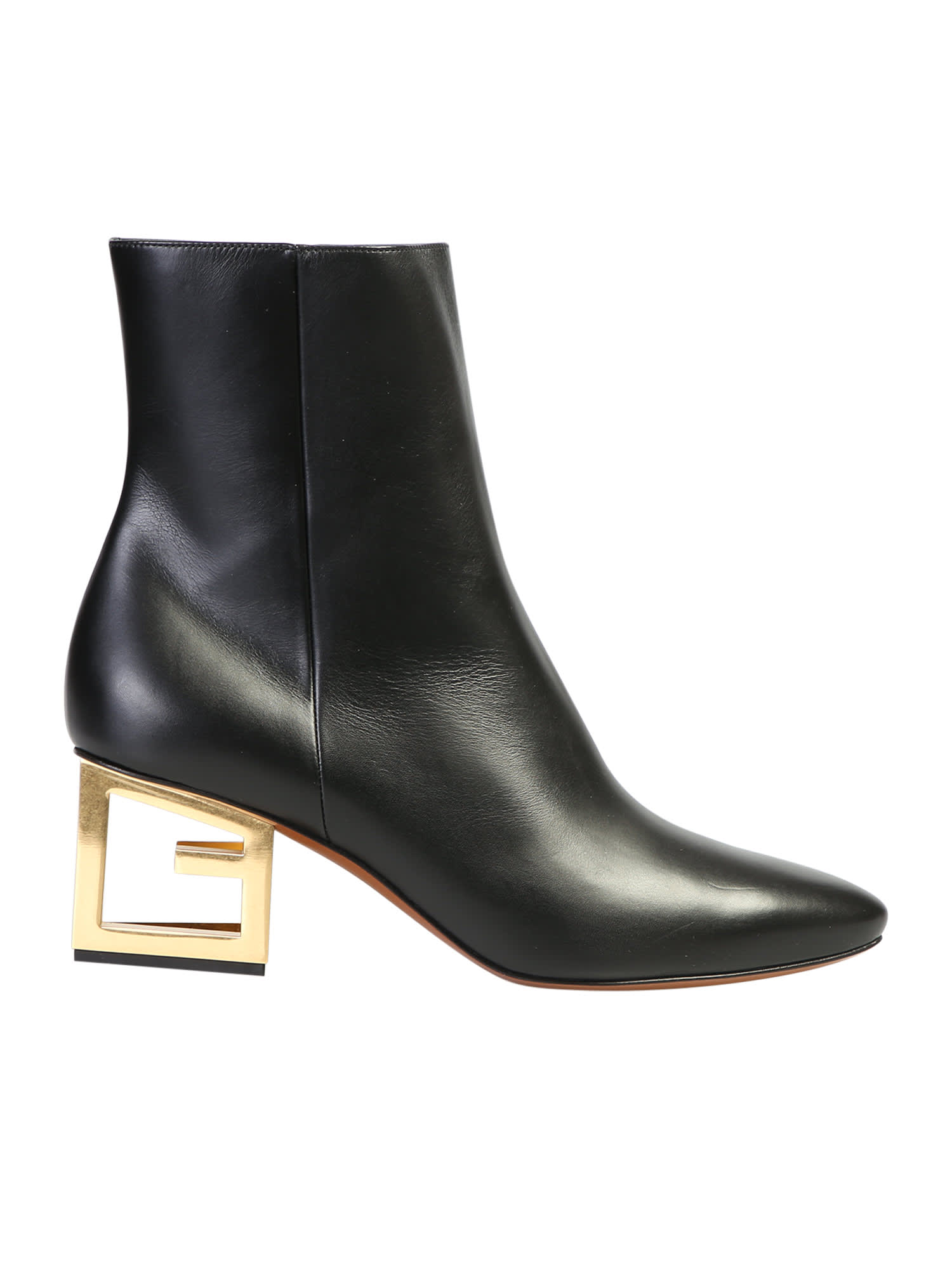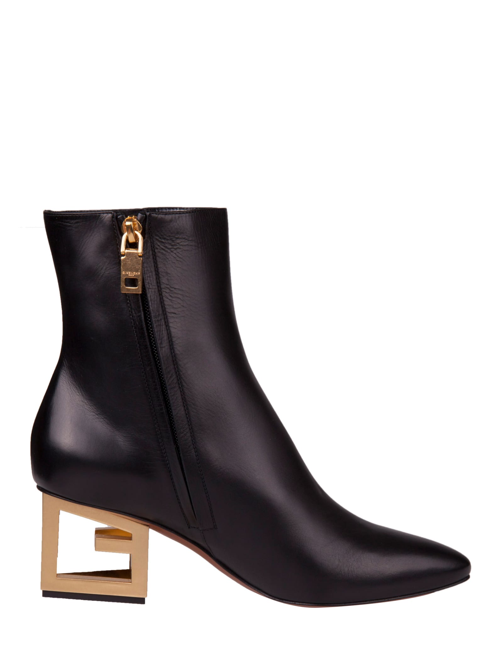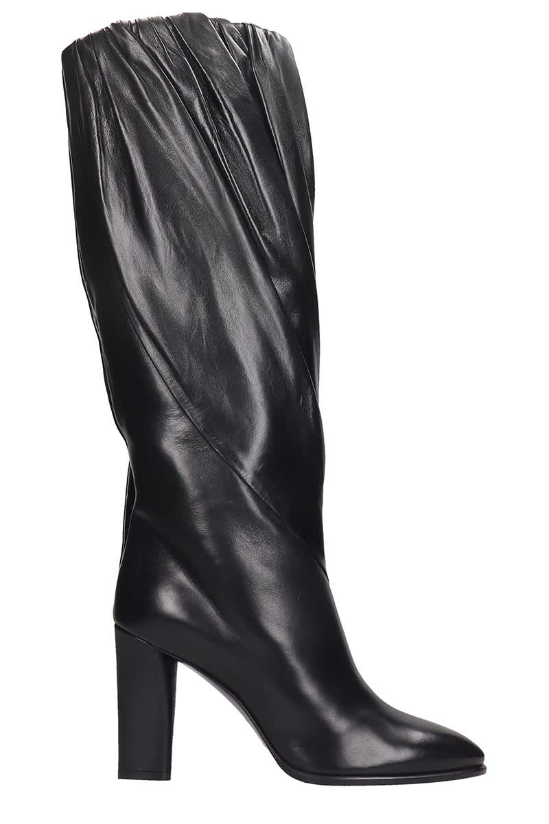Triangle high High heels boots in black leather, pointed toe, slip on, gold heel detail, 60 mm heelComposition: Leather