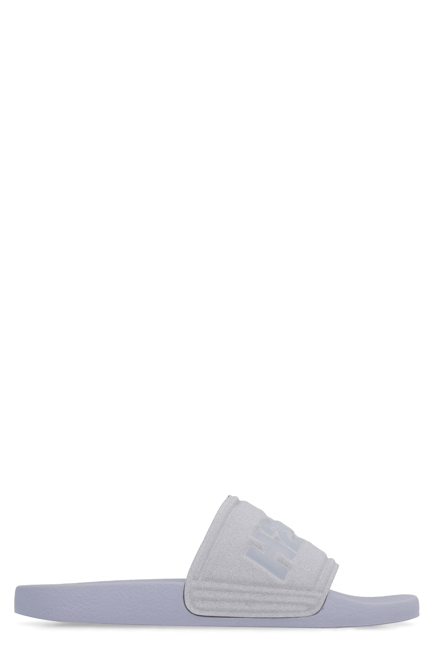 Adidas Originals PVC slides with glitter-covered band featuring the three contrast stripes. Fabric lining, embossed logo on the side. Composition: 100% pvc
