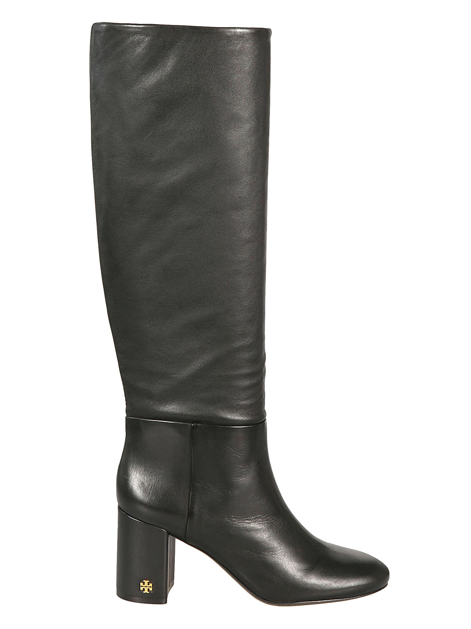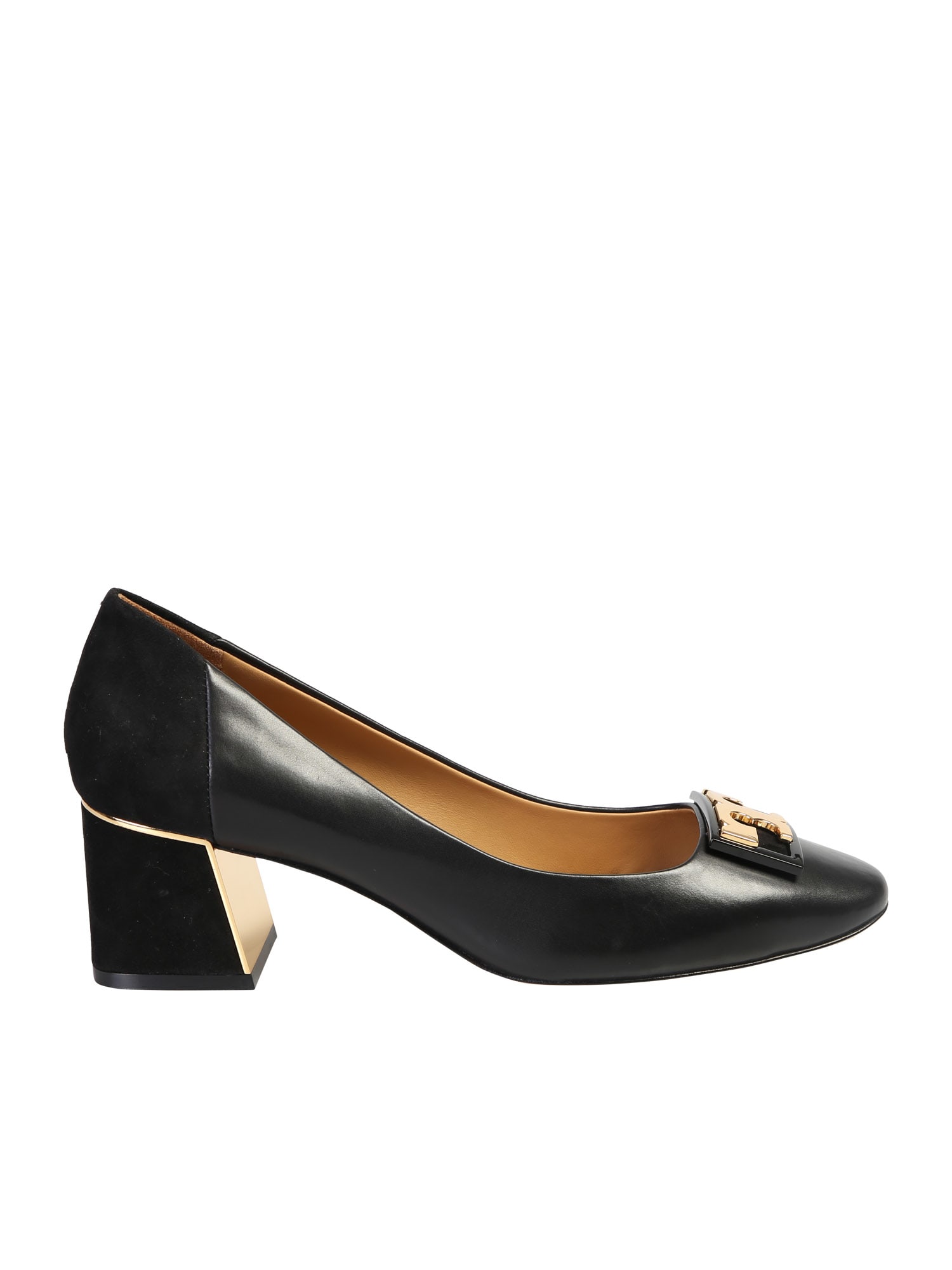 Tory Burch Minnie Travel Black And Gold Nappa Flat Shoes.