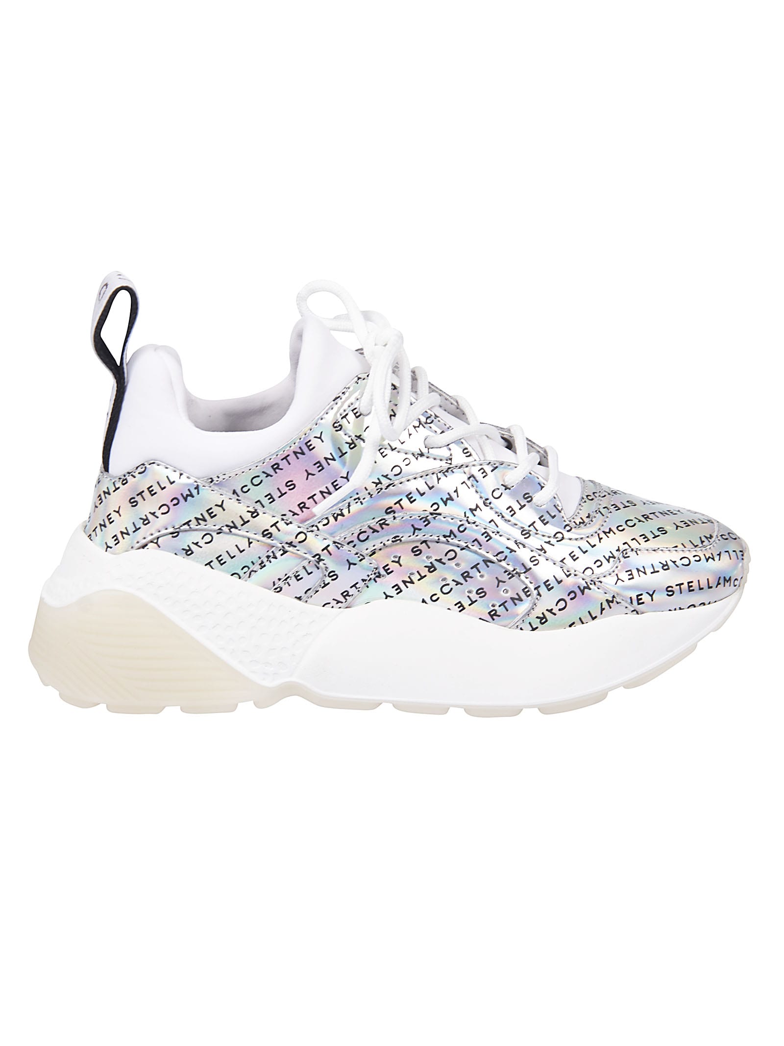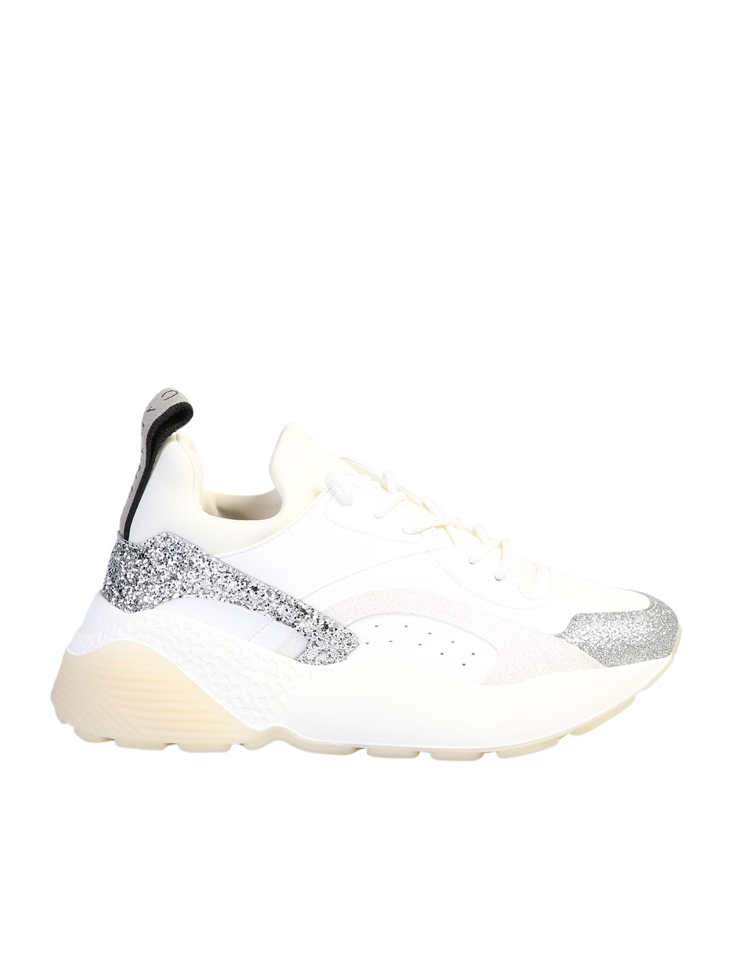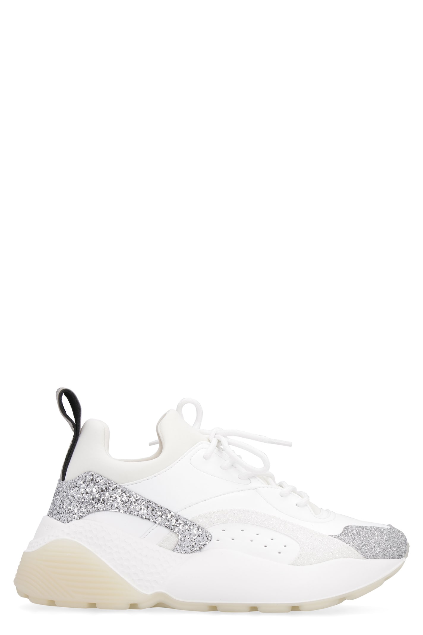 Glitter sneakers from Stella McCartney: White glitter sneakers with lace-up fastening, perforated details, synthetic fibre lining and rubber sole. Heel: 4.5 cm Made in ItalyComposition: 100% Polyurethane
